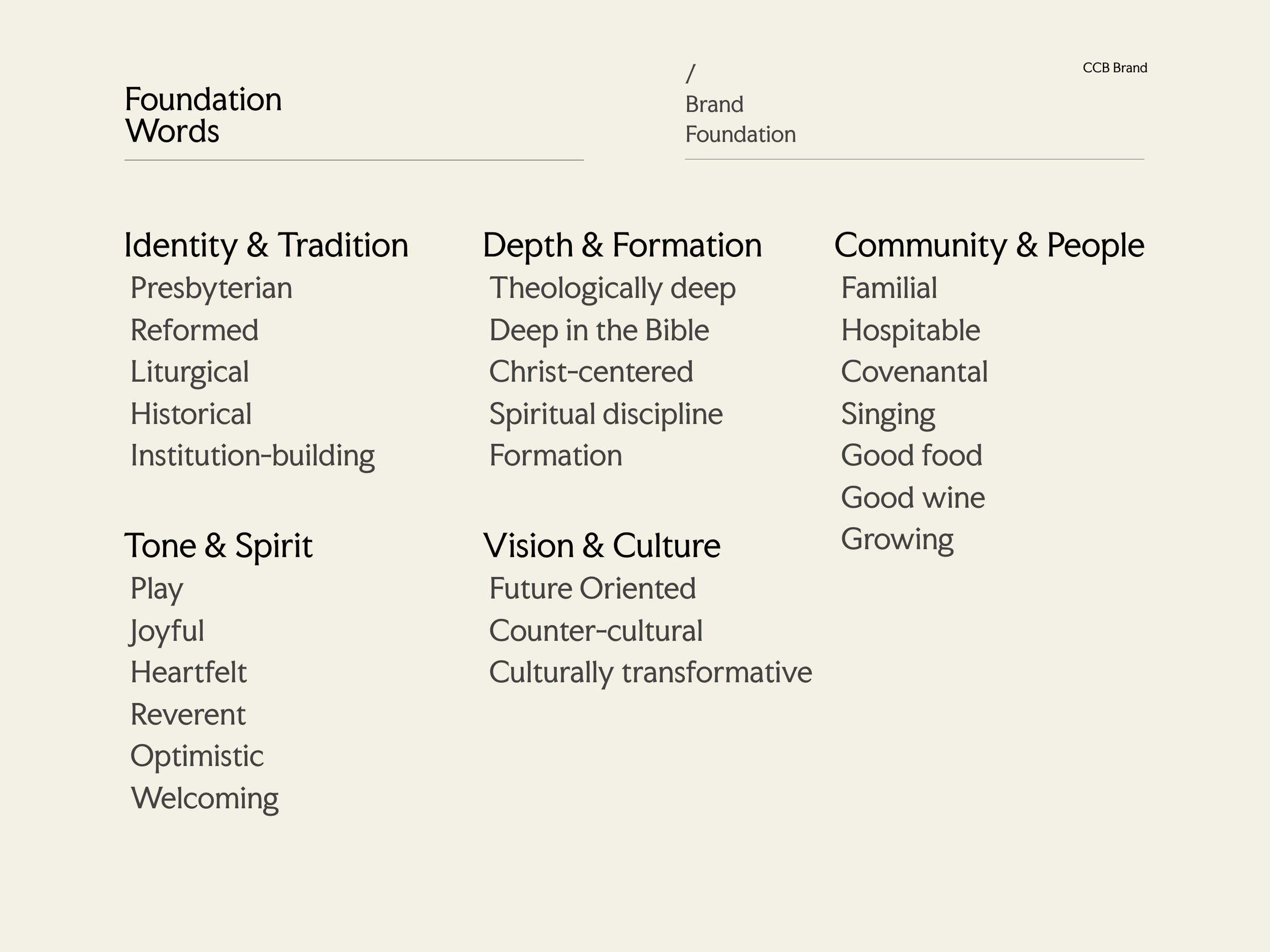 We worked collaboratively to capture your current landscape and frame key decisions for your brand’s future direction. It is a process to help me understand your world through your insights—what you hear, feel, and see.